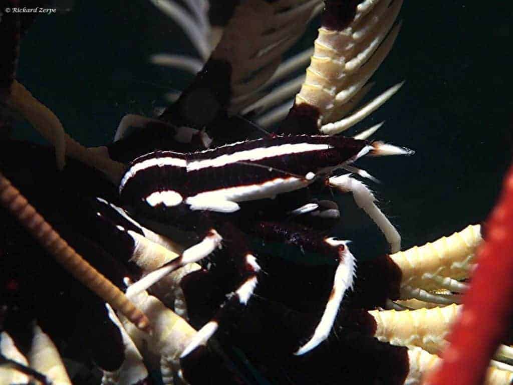 Allogalathea elegans voedt zich met plankton en profiteert tegelijkertijd van zijn gastheer, die hetzelfde dieet volgt en zich altijd in de beste stroomgebieden bevindt waar het plankton zich kan voeden.