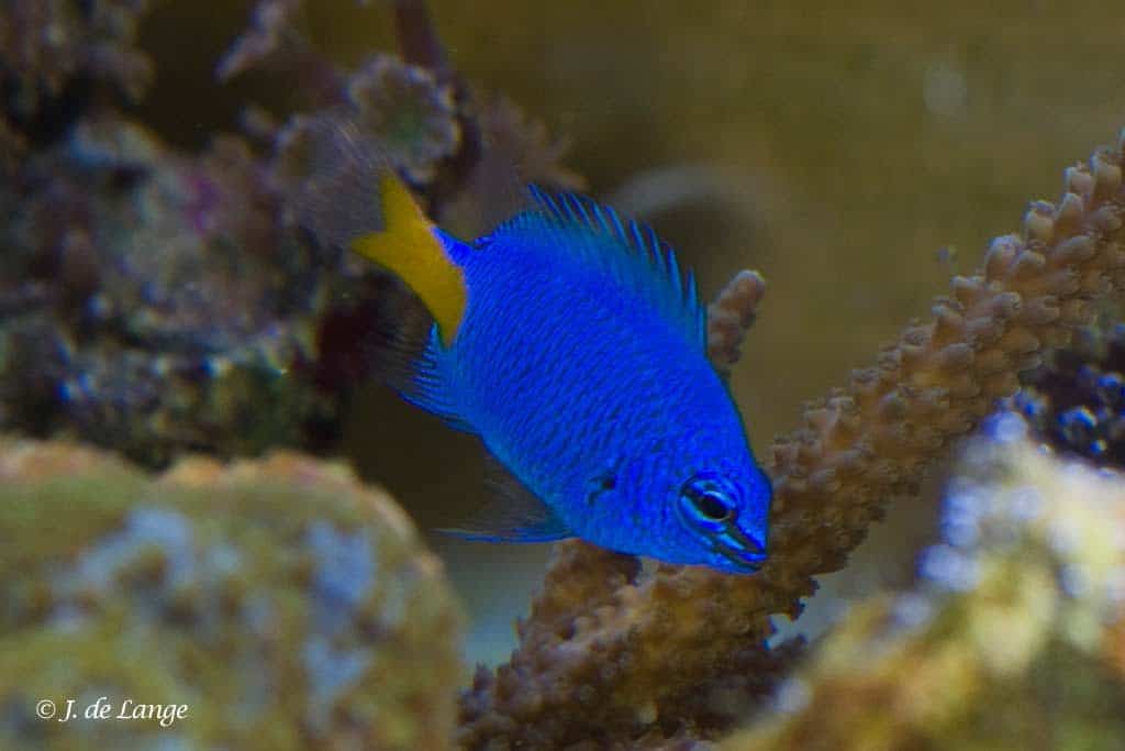 De Chrysiptera parasema – Azuren Juffer is al in het aquarium nagekweekt maar we hebben nog geen details kunnen vinden.