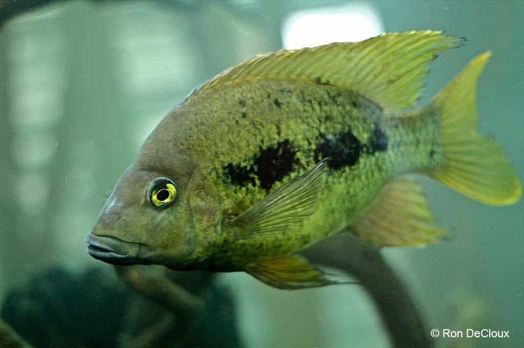 De Ptychochromis grandidieri heeft een gelige tot goudkleurige grondkleur met een horizontale serie aan duidelijke zwarte vlekken ter hoogte van de zijlijn op de flanken. Ze kunnen een lengte bereiken van zo’n 21 centimeter.