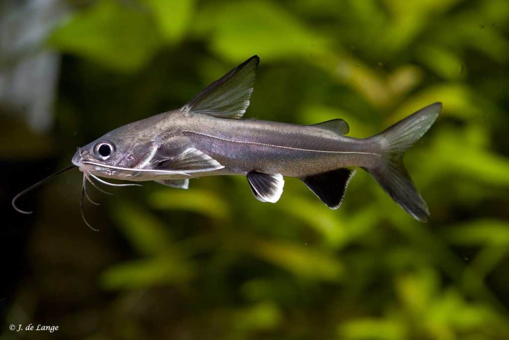These active catfish have the same silver gray color as sharks. The fins are black like some shark species. It is a very active catfish that glides gracefully through the water.