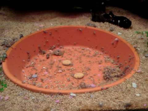 nieuwe eieren in de kweekbakAchter in het midden is moeders, de drie op de voorgrond zijn de kids en als ik de foto zo bekijk gok ik van de voorste en die omhoog zwemt dat het vrouwtjes zijn en die schuin over de grond aan het zoeken is een mannetje is, kijkend naar de body en de grootte. Mannetjes zijn altijd wat slanker en wat kleiner.